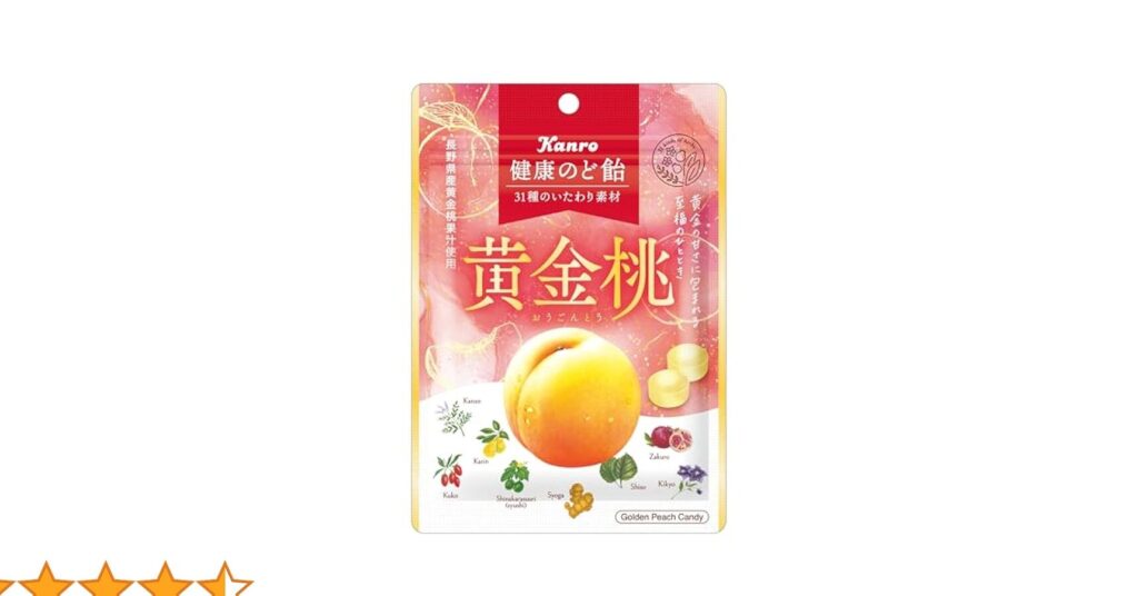 「カンロ 健康のど飴 桃」は、喉のケアに特化した飴です。桃の自然な甘さが特徴で、特に喉の不快感に悩む方に最適です。具体的には、以下のような特徴があります。