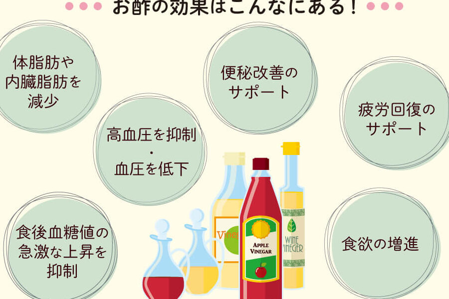 酢は、私たちの健康にさまざまな良い影響を与えるとされています。酢の摂取がどのように私たちの身体に貢献するのか、具体的な効果を詳しく見ていきましょう。