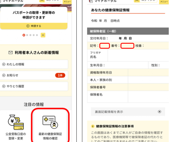 - 受給者証:健康保険証に記載された被保険者番号をそのまま確認できます。