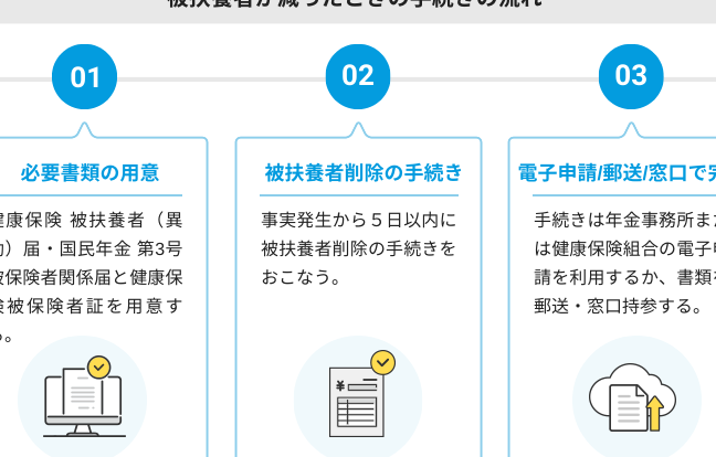 - 扶養者の転職や引越しなどの生活の変化があった場合にも、加入手続きが必要