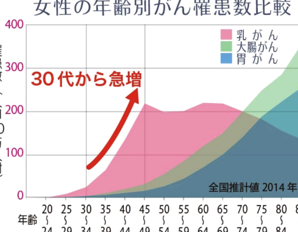 年齢によって乳がんリスクは著しく変わります。具体的には: