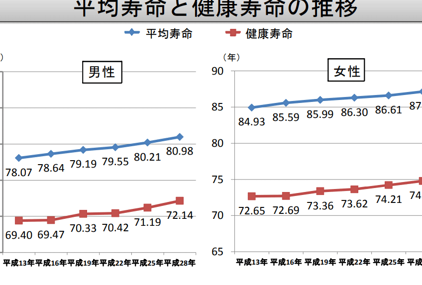 症状がある男性は、健康寿命が顕著に短くなる傾向があります。たとえば、フレイルや運動機能低下、低栄養といった複数の症状を抱える場合、平均して健康寿命は10年以上短縮される場合があります。具体的には、