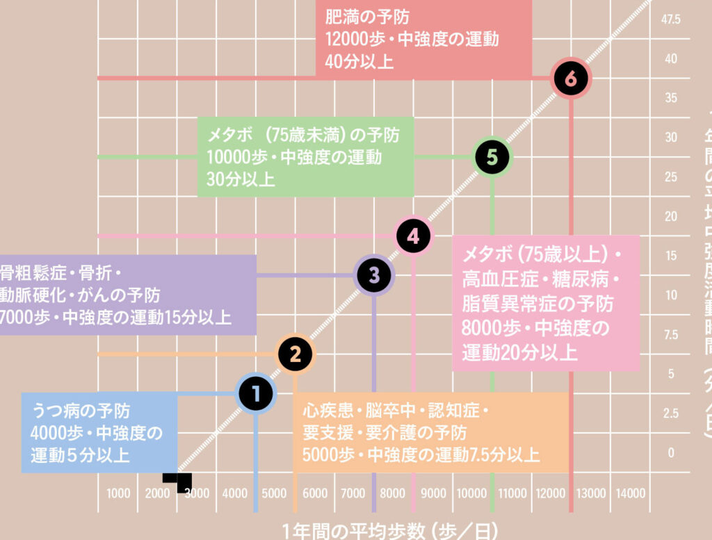 心血管疾患のリスクを大幅に減少させるためには、週に150分以上の中強度運動が推奨されています。この運動量には、ウォーキングも含まれます。具体的には次のような効果があります。