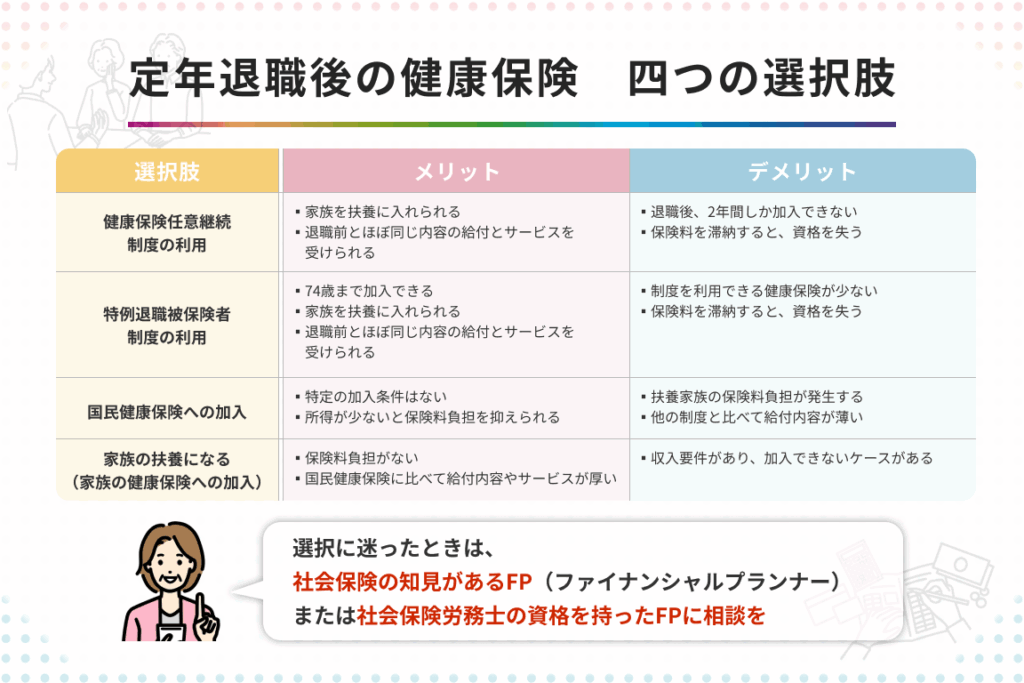 定年後の健康保険には、主に国民健康保険と介護保険が存在します。それぞれの保険制度には特有のメリットがあり、我々が選択する際に考慮すべき点があるんです。