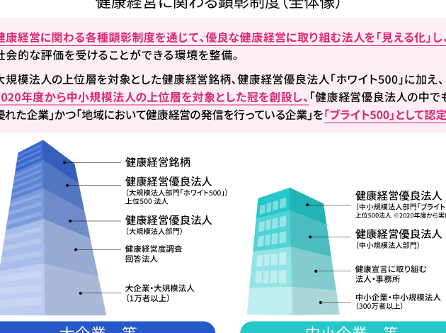- ホワイト500: より厳しい基準を満たす企業向けで、先進的な健康施策の実施が評価されます。