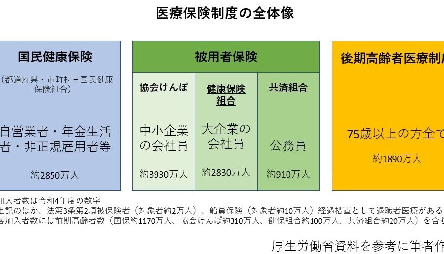 - 国民健康保険は、市町村が運営し、自営業者やフリーランスなどすべての市民が対象です。