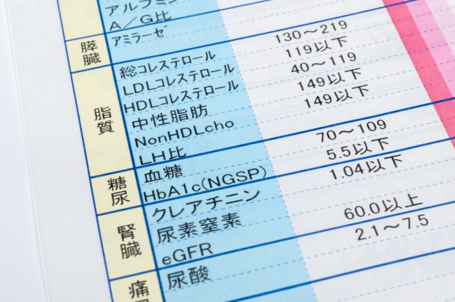 - 高尿酸血症:男性で7.0 mg/dL以上、女性で6.0 mg/dL以上