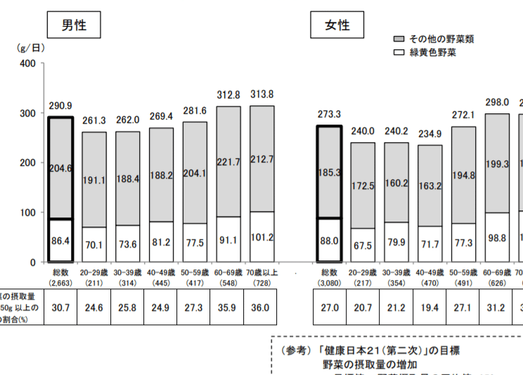 - 栄養素不足: ビタミンDやカルシウムなど、一部の微量元素が不足気味です。特に高齢者層で顕著です。