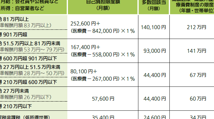高額療養費の自己負担限度額はいくら?