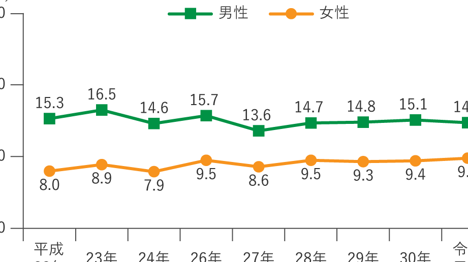 令和元年の国民健康栄養調査は、我々の健康状態を把握するために実施されました。この調査では、20歳以上の男性における喫煙習慣者の割合が特に注目されています。